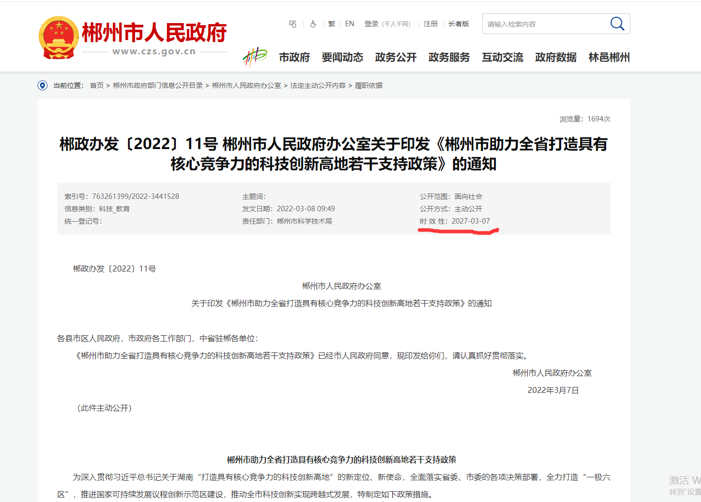 壹、郴州市高新技術(shù)企業(yè)認(rèn)定獎勵補貼政策文件:郴州市助力全省打造具有核心競爭力的科技創(chuàng)新高地若干支持政策(郴政辦發(fā)〔2022〕11號)